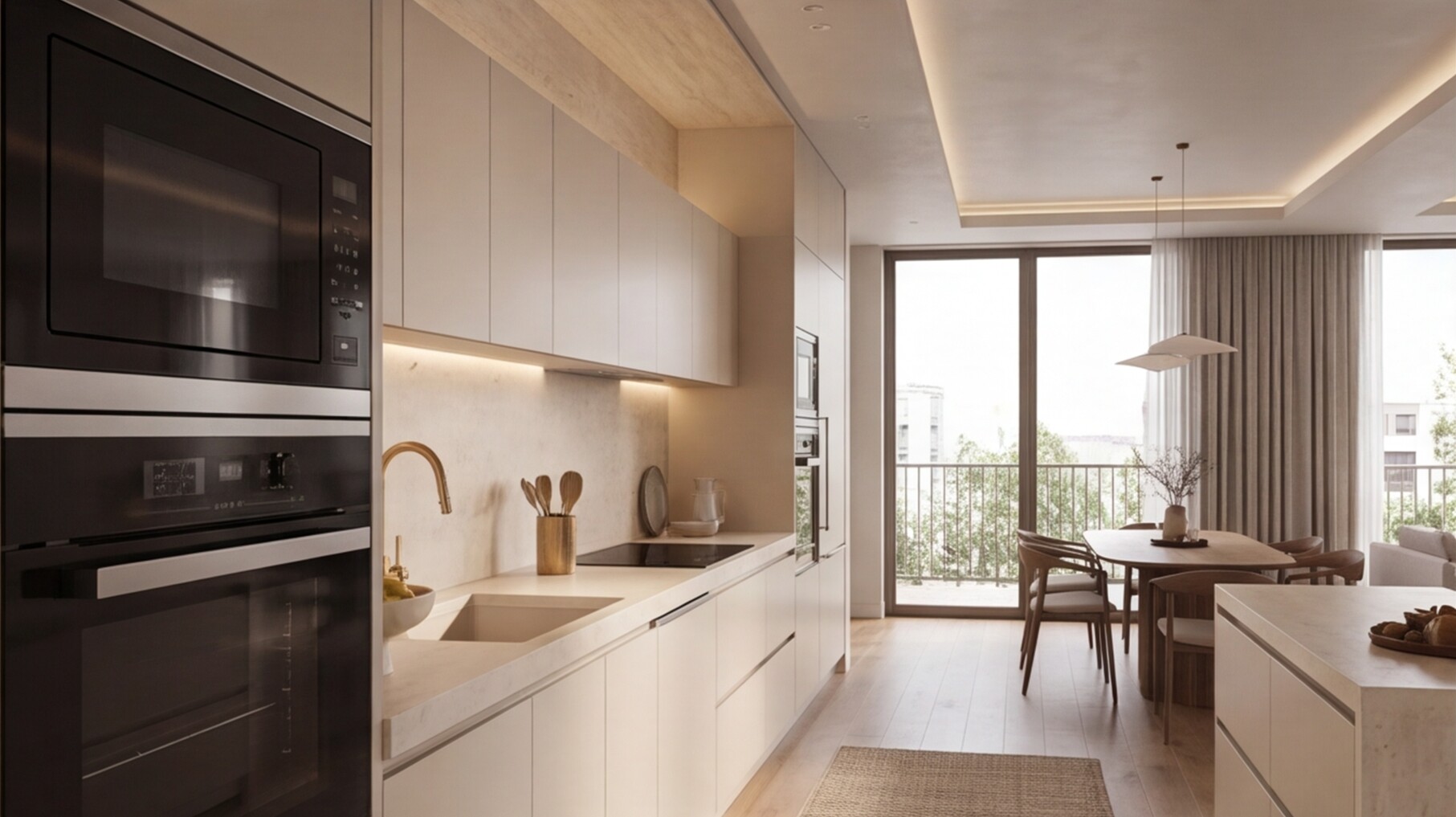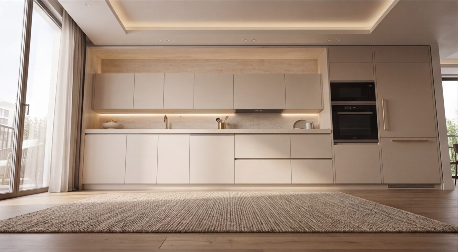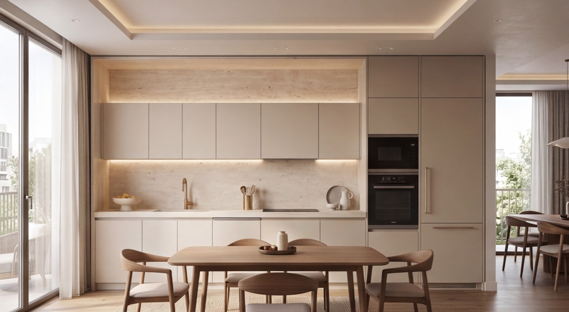 Прямая кухня «Травертин Беж 3.6» — это воплощение спокойной современной роскоши, где натуральные оттенки, архитектурная чистота и функциональность объединяются в цельное премиальное пространство.